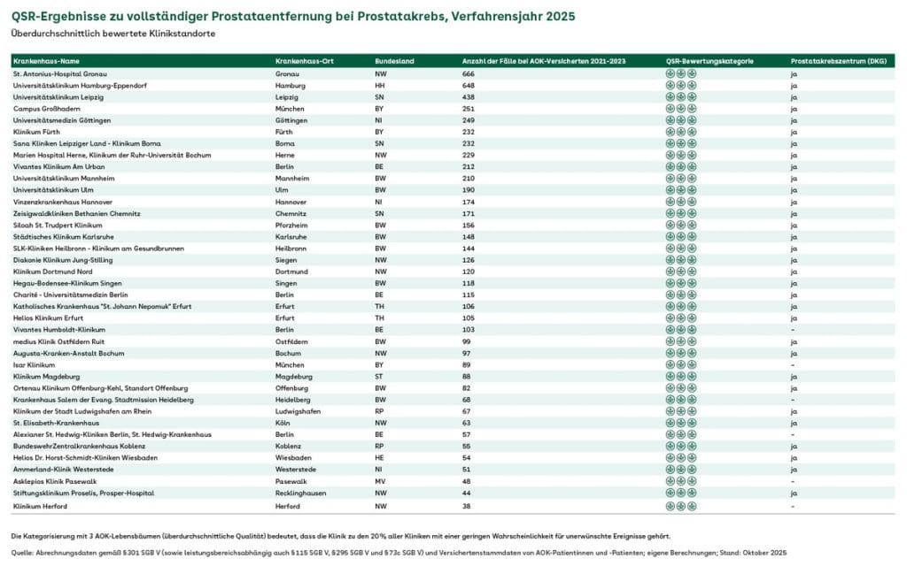 In 2024, around 34,700 radical prostatectomies took place nationwide. The analyses only detect complications up to one year, not incontinence or impotence.